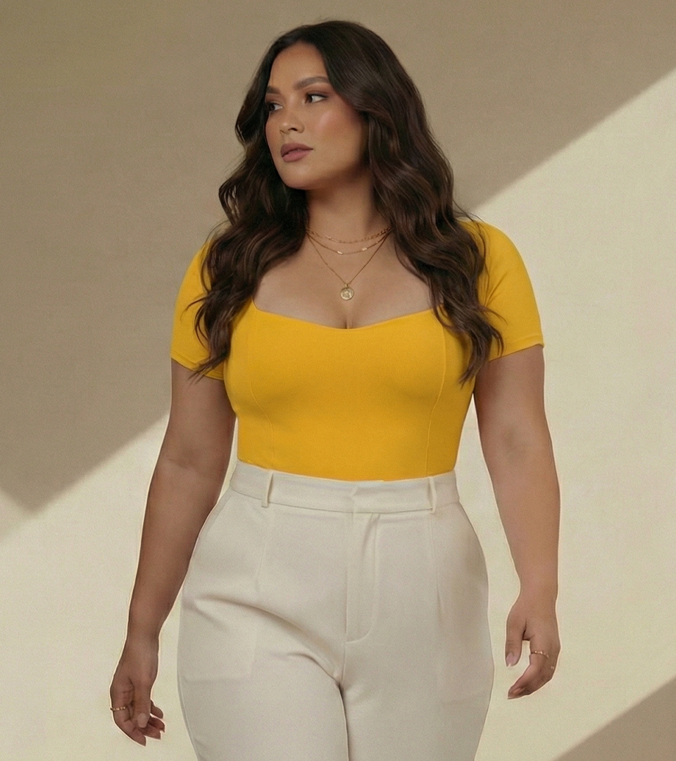 Body Control Basico Manga Costuras Estilizadas Mostaza ⭐ Pluss