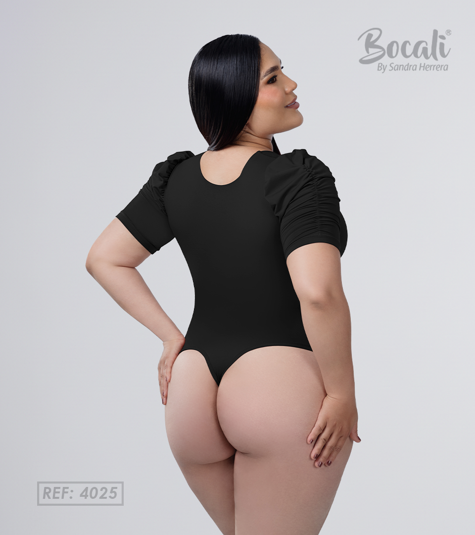 Body Control Manga Bombacha y Detalles Surcido Negro ⭐ Pluss