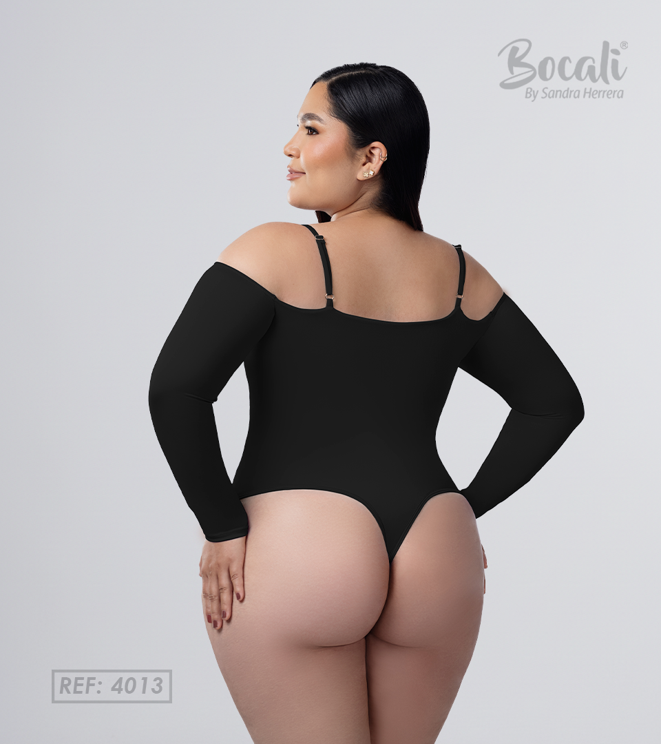 Body Control Manga Larga Escote en V con Detalle de Tiras Negro ⭐ Pluss