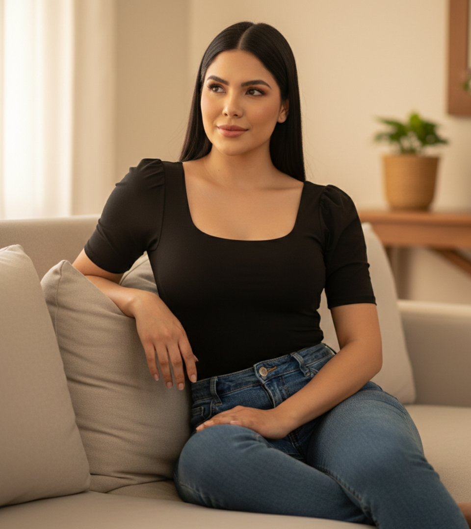 REF: 3595 - Negro BODY CONTROL ABDOMEN La prenda Body Control MNG Farol ofrece un estilo único, con un escote sesgado redondo, manga farol y una tecnología innovadora de polilycra, powernet y abrochadura tipo brasier para una experiencia de comodidad suprema. Inspírate con su versatilidad, combinando estilo y funcionalidad. ¡Encuentra tu...