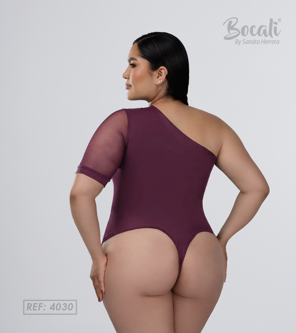 Body Control Superior En Maya Asimetrica Con Surcido En Hombro Uva ⭐ Pluss
