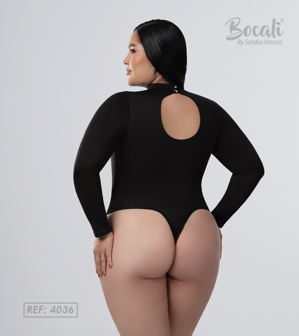 Body Control Manga Larga Con Pieza Asimetrica Delantera Negro ⭐ Pluss