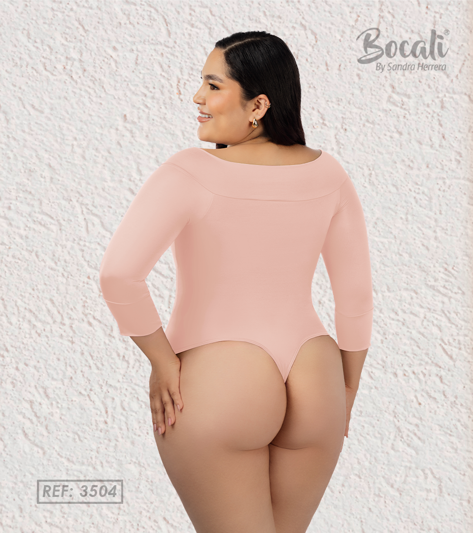 REF: 3504 - Rosa Bebe BODY CONTROL ABDOMEN Prepárate para un look de impacto con este Body Control Manga 3/4 de diseño moderno. Sus escote en V, hombros semi descubiertos y manga 3/4 le confieren elegancia y acompañan perfectamente la silueta. Fabricado con Polilycra y Powernet, este body te proporcionará una...
