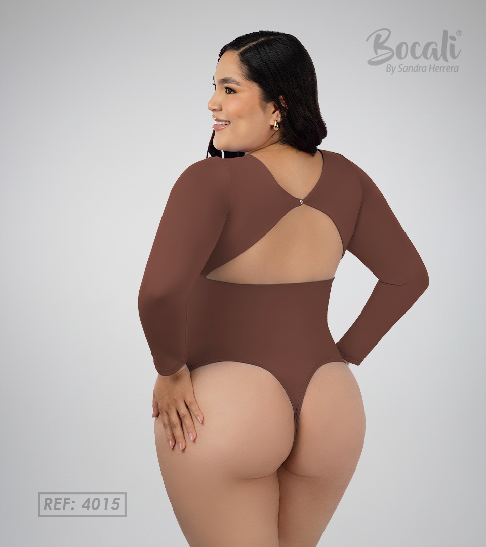 Body Control Escote Doble Hebilla Manga Larga Marron ⭐ Pluss